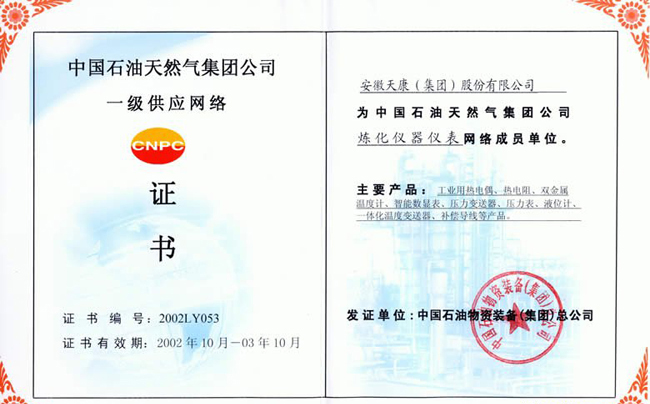 工業(yè)熱電偶、熱電阻、雙金屬溫度計(jì)、一體化溫變器、補(bǔ)償導(dǎo)線等產(chǎn)品多年來被中國(guó)石油天然氣集團(tuán)公司評(píng)為一級(jí)供應(yīng)網(wǎng)絡(luò)